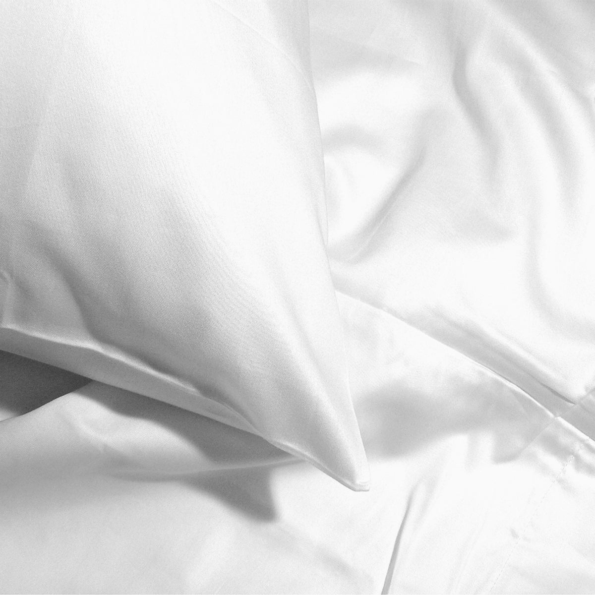 Eine schlichte, schöne, weiße Bettwäsche aus strapazierfähigem Mischgewebe. Verzugsfrei konfektioniert und in Deutschland ausgerüstet. Glattsatin in Dauerglanzoptik mit spezieller Ausrüstung für langanhaltenden Weißegrad.