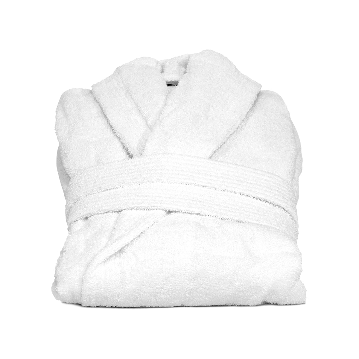 Schlichter und robuster Bademantel für Zimmer- und Spa Bereich. Das homogene Walkfrottee, die glatte Materialoberfläche und dezenten Ziernähte bilden die ideale Grundlage für individuelle Bestickungen.